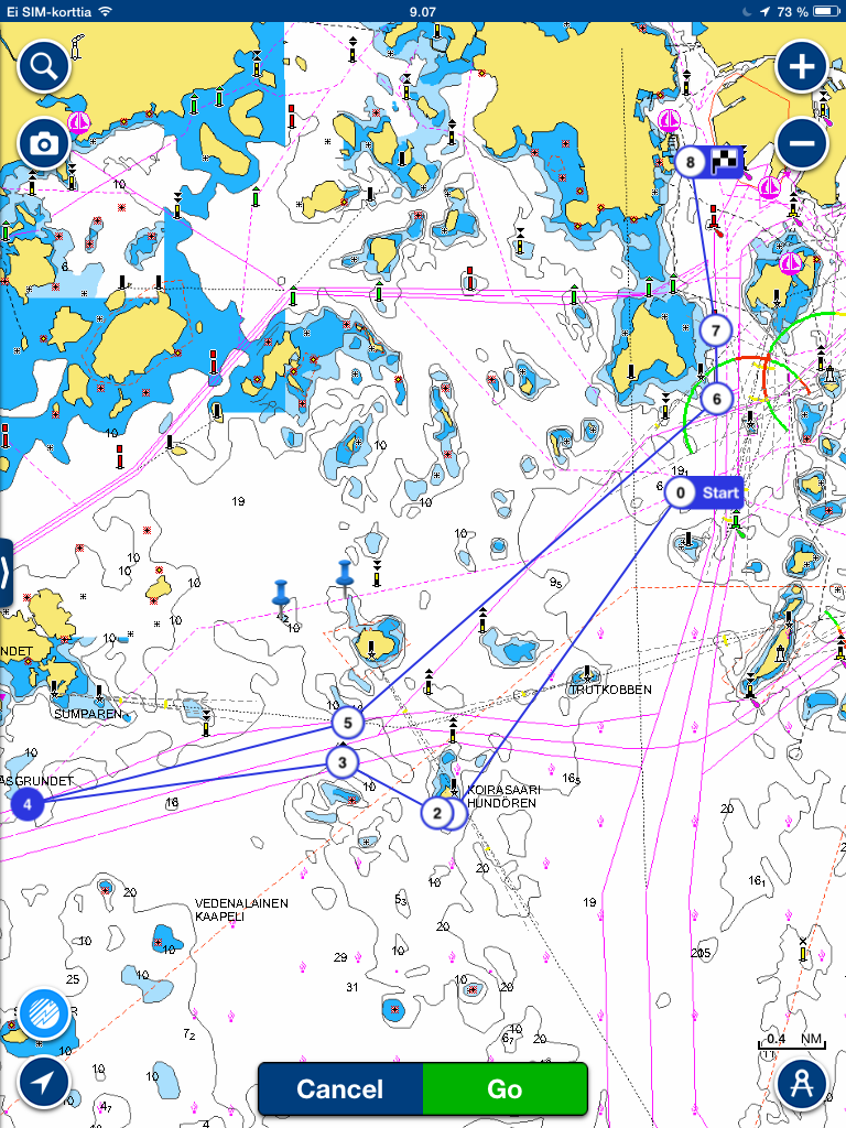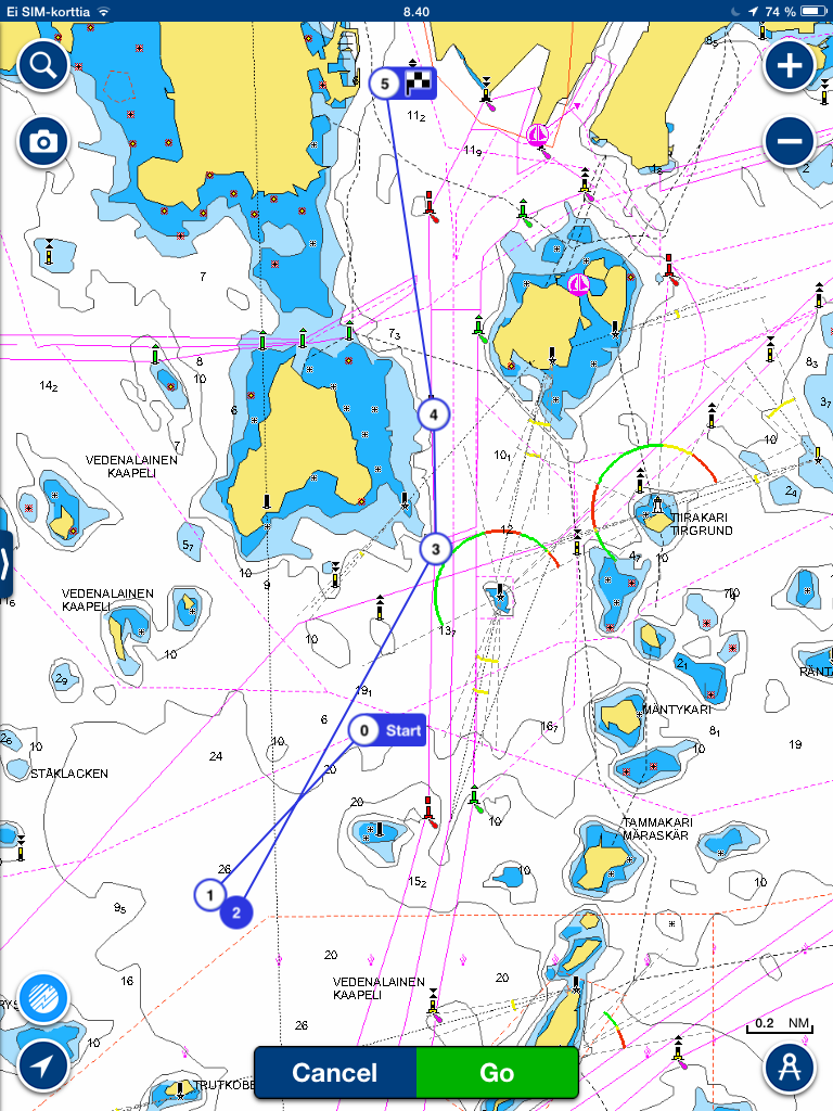 2: Eteläviitta Rysäkarin eteläpuolella (60°5,6’N 24°49,6’E) jätetään vasemmalle