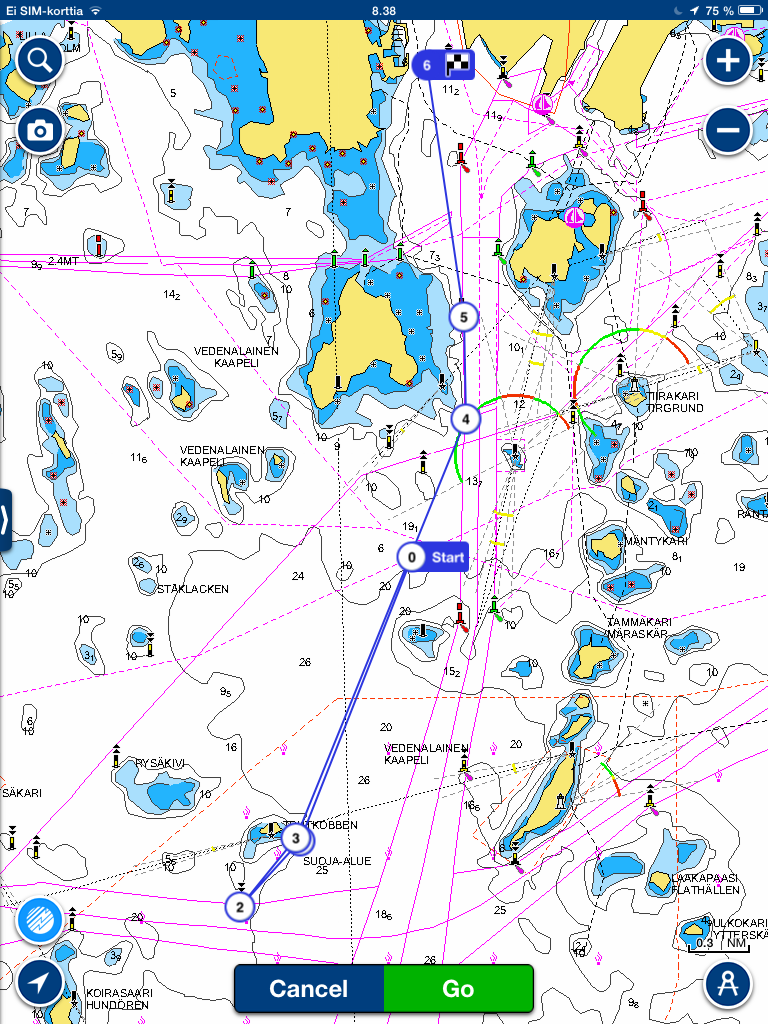 2: Eteläviitta Rysäkarin eteläpuolella (60°5,6’N 24°49,6’E) jätetään oikealle